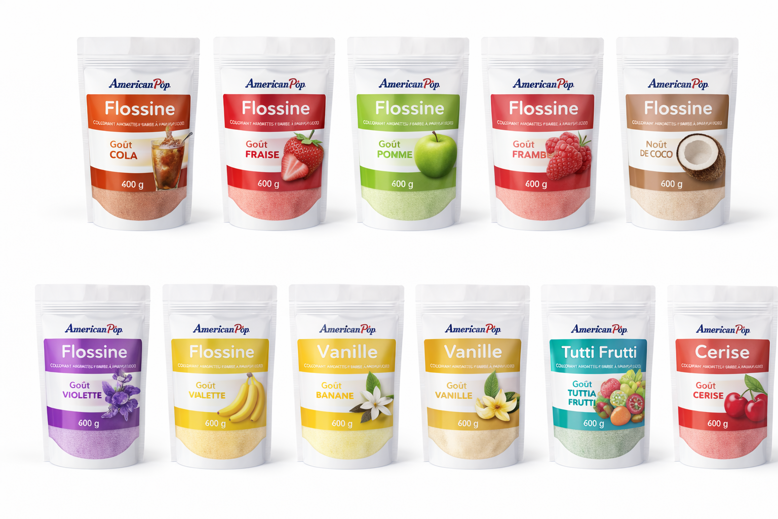 La flossine est un colorant aromatisé concentré spécialement conçu pour la fabrication de barbe à papa. Elle s’utilise en mélange avec du sucre blanc neutre et permet d’obtenir une barbe à papa colorée, parfumée et parfaitement filée, tout en réduisant significativement le coût par portion.